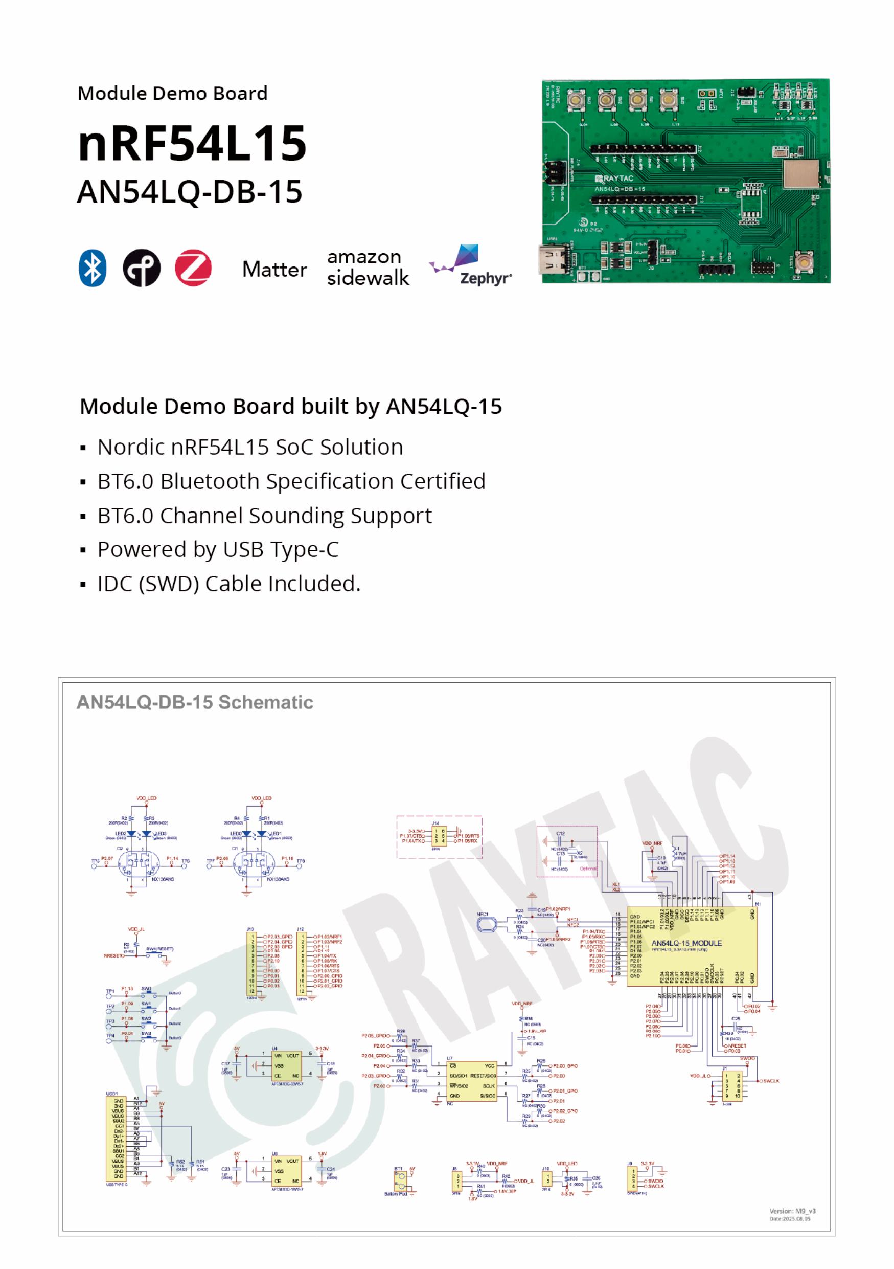 AN54LV-DB-15 demo board is designed for quick testing and debugging without building your own board. The board is only available with AN54LV-15 (Chip Antenna) module.